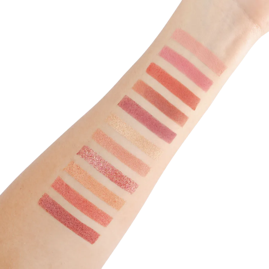 Tiene una pigmentación media-alta y una textura sedosa que se difumina fácil. Perfectas para maquillajes cálidos y coquetos. Es de larga duración y de esos básicos que siempre vas a usar.